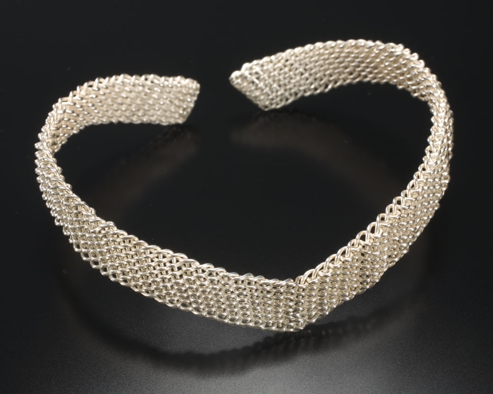 Fine silver chevron cuff, woven of 14 wires.