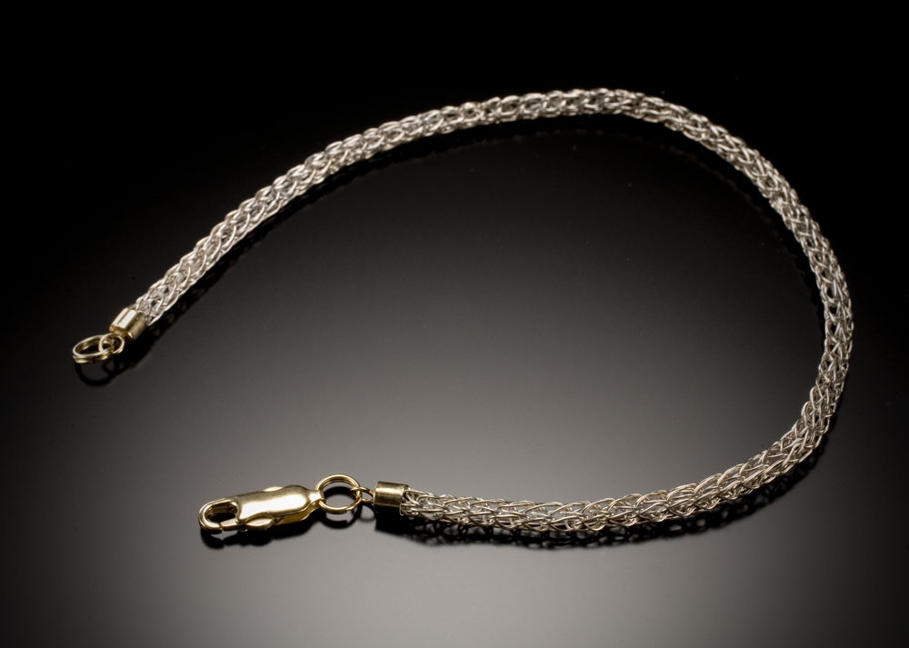 Shown here in Fine Silver, with 14 K Yellow gold clasp. Available in various sizes. Contact for price of custom size.